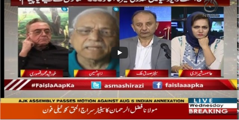 Faisla Aap Ka live telecasted today at Aaj News can be watched here online with ease. Today’s Faisla Aap Ka show topic is Pakistan’s Kashmir Policy After 5 August, which is different from yesterday topic. Please discuss here about latest episode of Faisla Aap Ka 5th August 2020, online after watching YouTube video. What is your opinion about today’s news topics Pakistan’s Kashmir Policy After 5 August. Please give your views.