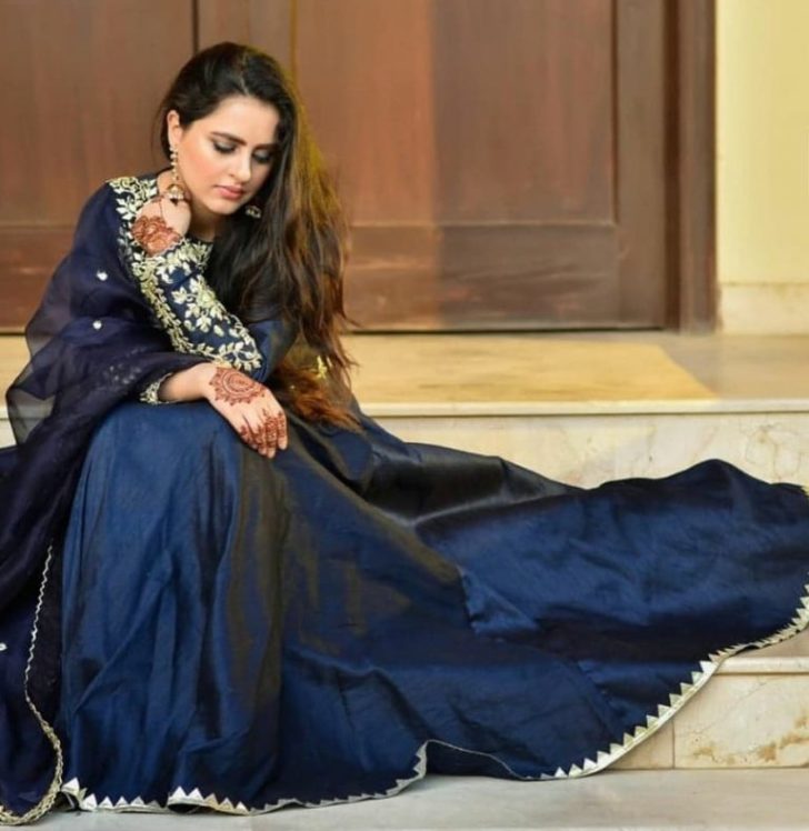 Fatima Effendi stands out from the crowd with her dark Eid dress by Mawsim. Her blue dress had detailed gold embroidery on the top half of the dress, while the sheen on the rest of the dress was enough to burst it.