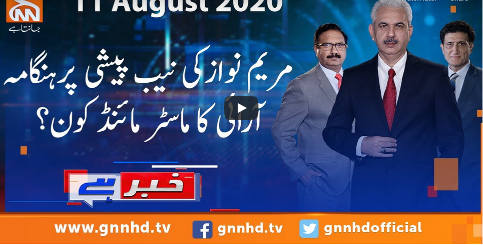 Khabar Hai live telecasted today at GNN News can be watched here online with ease. Today’s Khabar Hai show topic is Maryam Nawaz Again Active In Politics, which is different from yesterday topic. Please discuss here about latest episode of Khabar Hai 11th August 2020, online after watching YouTube video. What is your opinion about today’s news topics Maryam Nawaz Again Active In Politics. Please give your views.