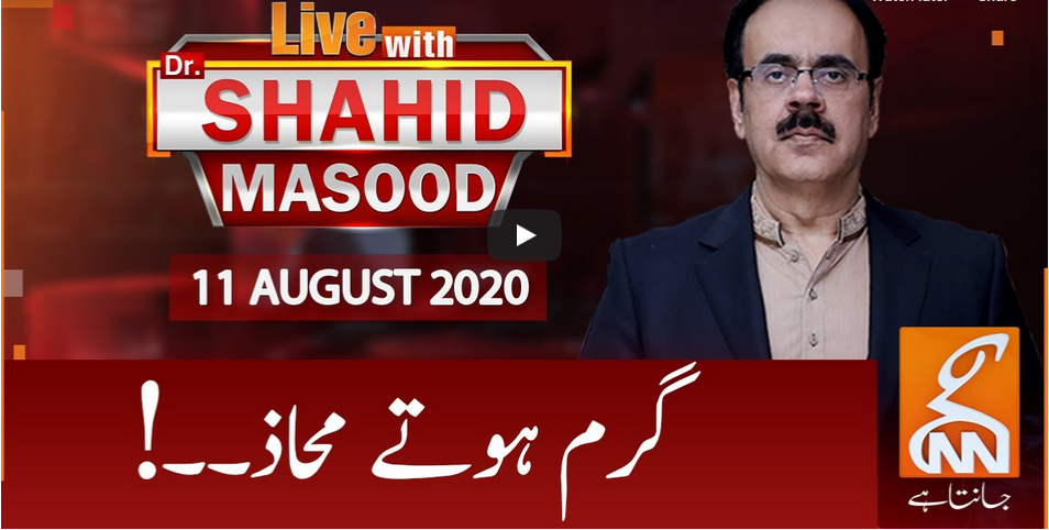 Live with Dr. Shahid Masood live telecasted today at GNN News can be watched here online with ease. Today’s Live with Dr. Shahid Masood show topic is Garm Hote Mahaz, which is different from yesterday topic. Please discuss here about latest episode of Live with Dr. Shahid Masood 11th August 2020, online after watching YouTube video. What is your opinion about today’s news topics Garm Hote Mahaz. Please give your views.