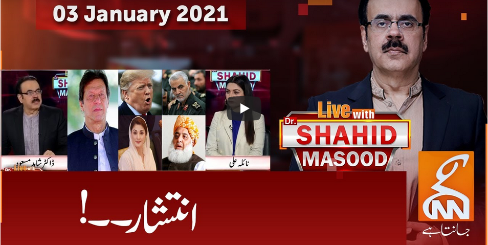 Live with Dr. Shahid Masood live telecasted today at GNN News can be watched here online with ease. Today’s Live with Dr. Shahid Masood show topic is Riasat Aur Awam, which is different from yesterday topic. Please discuss here about latest episode of Live with Dr. Shahid Masood 3rd January 2021, online after watching YouTube video. What is your opinion about today’s news topics Riasat Aur Awam. Please give your views.