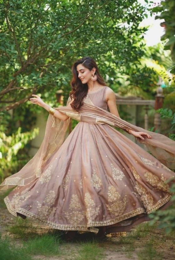 Maya Ali’s taid-colored oath dress was designed by none other than her best friend Faiza Saqlain. The Parey Hut Love star opted for a very understated make-up look and statement earrings that made them look very traditional and good – oath appropriate.