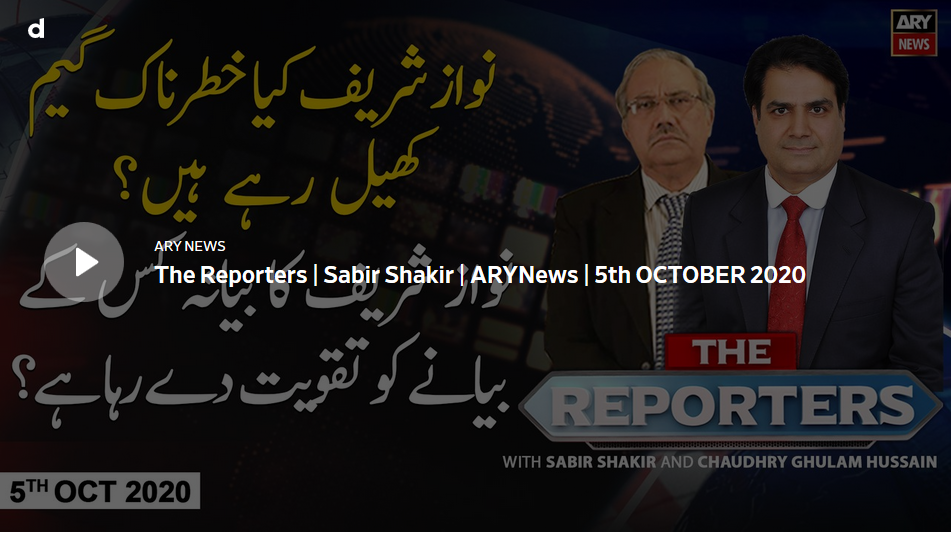 The Reporters live telecasted today at Ary News can be watched here online with ease. Today’s The Reporters show topic is What Dangerous Game Nawaz Sharif Is Playing?, which is different from yesterday topic. Please discuss here about latest episode of The Reporters 5th October 2020, online after watching YouTube video. What is your opinion about today’s news topics What Dangerous Game Nawaz Sharif Is Playing? Please give your views.